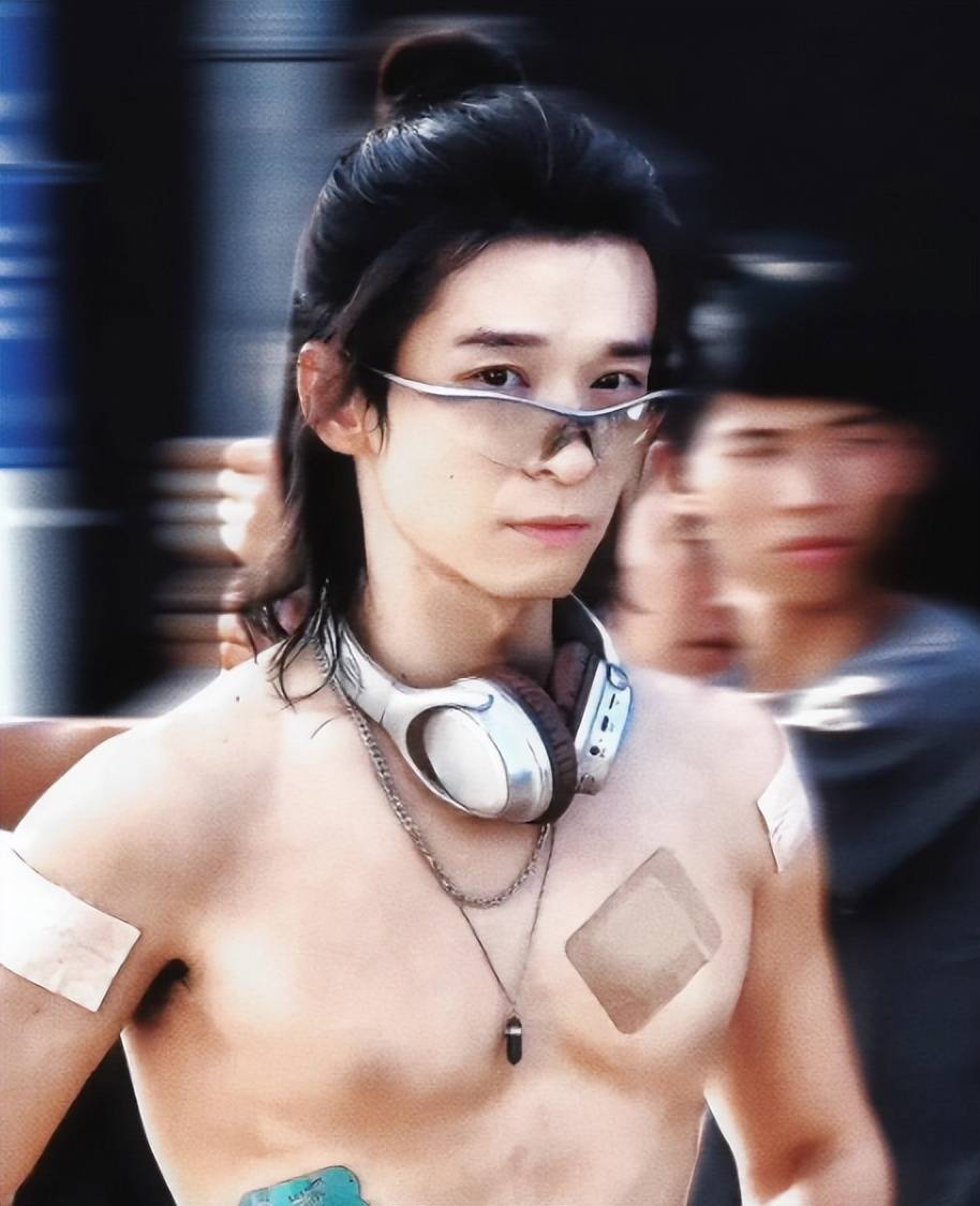 他一身古代大侠装扮,穿着灰色的布衣,下身搭配着同色系的长裤,头发半扎着。